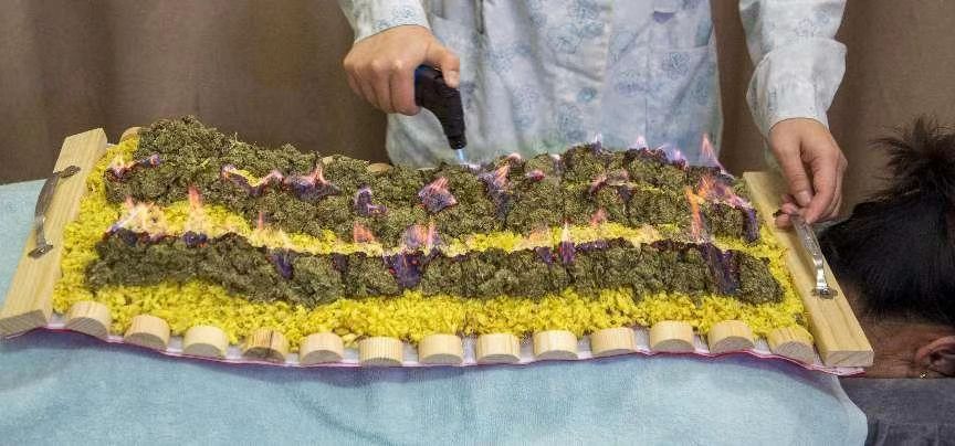 督脉灸也可以称作是龙骨灸,也就是在督脉循环的嵴柱部位施以隔姜、隔药灸、综合经络腧穴药物艾灸的功效于一体的外治法,将生姜打碎成泥平铺在背部,并在生姜上点燃艾灸温经活络、增强皮肤的通透性、促进药油的吸收,该疗法具有温经散寒、通痹止痛的作用,尤其对强直性嵴柱炎、类风湿性关节炎、腰间盘突出症、老年性骨质疏松症、股骨头坏死等都可以使症状改善,对女性的阳气不足引起的手脚冰冷、痛经等通过调节全身的阴阳平衡来调理全身的各脏腑功能,达到防病、保健作用。