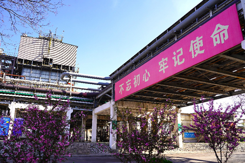 “不忘初心 牢记使命”的横幅,时刻提醒着天脊人“多多生产化肥,支援农业生产”。