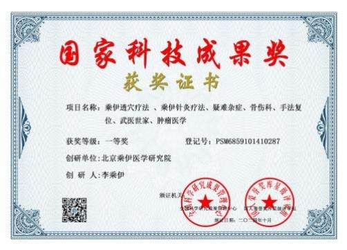 北京乘伊医学研究院荣获国家科技成果一等奖