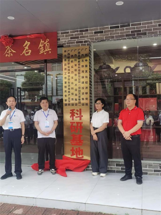 随着金黄色的“咨政联盟科研基地”牌子的缓缓掀起,在热烈的掌声中,姚娇芬作了热情洋溢的致辞:“今天,我们踏着仲夏茶香,共同为林忠伟(广西)产教科咨政联盟“科研基地”揭牌。我谨代表县委、县政府,向心系茶乡的林教 授团队致以诚挚感谢!向支持姑辽茶发展的各界朋友致敬!
