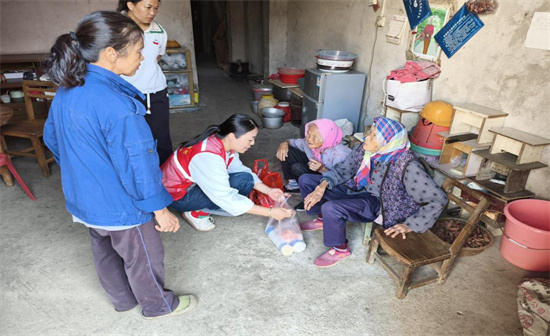 虽不时有村干和邻居的照料,但“独居,高龄”这两个词连在一起,就是隐隐让人难以安心。尽管她在村干和镇政府的支持下,申请到了农村A类低保,每个月360元的低保金加上农村社保、高龄补贴、养老护理补贴等,可支配的收入约有600元,伙食费是不愁了,可日常用水用电、洗衣做饭、出门看病也还需要料理的。正在为这位老人老无所依感到焦虑的阶段,民政部门组织工作人员到各村对特困、低保老人进行春节慰问,刚好也来到弄卜村,才让这个事情有了转机。