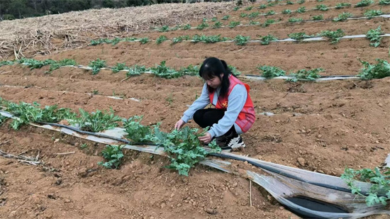 何军娟到田间地头了解西瓜产业发展,观察西瓜长势情况