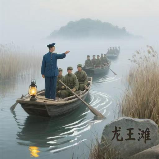 周逸群立即令船队朝北疾驶,以摆脱敌人。可敌人已确定这3只小船有问题,立即扯足风篷,并两弦加桨,直追过来。眼看要追上了,周逸群拿过战士郭忠贵手中的步枪,“叭”的一声,正中敌船主桅顶上的葫芦头,风帆飞快落下来。接着,周逸群又连开两枪,打落了敌船另两张风帆。他们乘机急速北驶。可枪声惊动了驻君山岛上之敌,3艘汽艇箭一般地追了上来。周逸群问舵手马得水,有没有藏船的地方。马得水说:“有,前面就是龙王滩,有27个港汊,汊汊相通,芦苇无边无际,进滩容易出滩难。”周逸群迅速率队驶入龙王滩。待敌汽艇赶到,3只小船已不见踪影。敌人在龙王滩周围转来转去,找不到人。天黑了,敌艇便开回了君山岛。