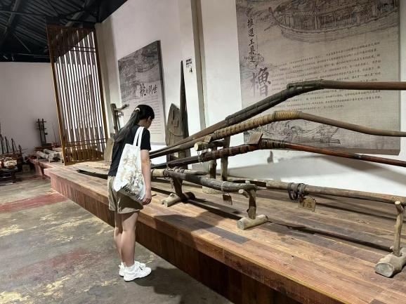 8 月 12 日,团队来到苏州阳澄湖舟船文化馆。这里汇聚了众多极具江南水乡特色的传统舟船,成员们通过实地参观、观看传统造船技艺演示,深入了解了江南地区独特的舟船文化及其与当地生活、经济发展的紧密联系。文化馆内丰富的实物展品与图文资料,让成员们对民间造船工艺的传承与发展有了更直观的感受,也为研究造船业的多元化发展提供了丰富素材。