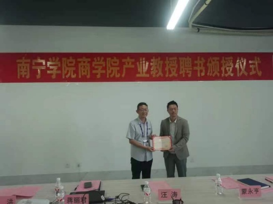 咨政联盟、广州雷雨资本及团队30人2日上午到达南宁学院,出席南宁学院商学院产业教授聘书颁授仪式,咨政联盟有7位成员获聘为产业教授,这是继去年20位获聘产业教授后的第二批。