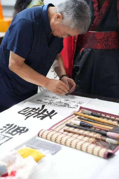 据了解,本次参展的名家阵容实力雄厚,除闫志忠、徐青、裴建新、李庆建、耿红霞外,还有师从李志向且2018年入围并入展国展的武桃芬,获第九届全国教师三笔字大赛二等奖的马树凯,作品多次获河南省美术新人作品展优秀奖的孙旌旗,出身书画世家的秦利敏,以及擅长写意花鸟的刘玲等。展览中的每一幅作品,既展现了书画艺术的精湛技艺,更承载着对周公文化的追思与传承,实现了千年文明与当代艺术的深度对话。接下来参展的名家现场挥毫: