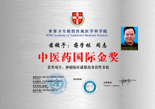 作为生于1954年的“共和国同龄人”,蒋学林的成长轨迹与新中国中医药事业的发展历程深度交织。从建国初期中医药事业的复苏,到改革开放后中西医结合的探索,再到新时代中医药“走出去”的跨越,他以“攻克癌症”为毕生使命,深耕中医理论与临床实践,不仅成为中国抗癌协会、康复医学会的权威专家,更以“肿瘤癌症就服海参活性多肽”项目斩获中医药国际金奖,让传统中医药在现代医学舞台绽放光彩。他的故事,是新中国医疗卫生事业从“跟跑”到“并跑”再到“领跑”的微观缩影,更是“把论文写在祖国大地上”的生动注脚。