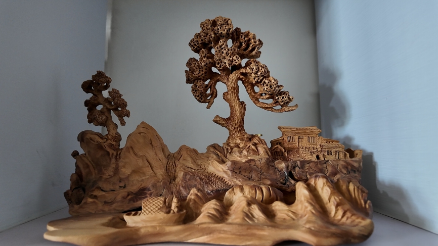 他们积极引入外部资源,合作经营农家乐毓芳园提高游客承接率;打造民俗风情街,引入根雕、文创等特色业态,让游客在感受非遗文化的同时,体验乡村的慢生活。该村村民苗魁宁的根雕,已获评市级非遗,正在申报省级非遗,他通过自己的巧手妙思,将村民眼中的烧火柴,雕琢成设计感十足的文创产品,为乡村文旅增添了更多艺术气息。
