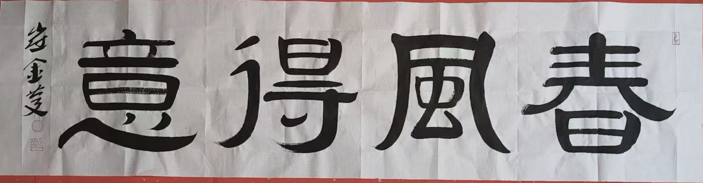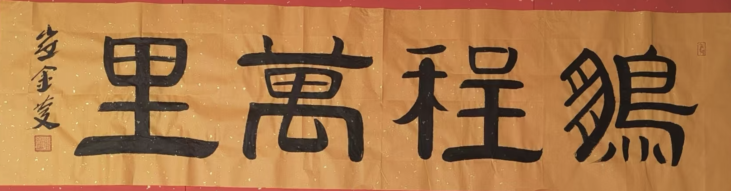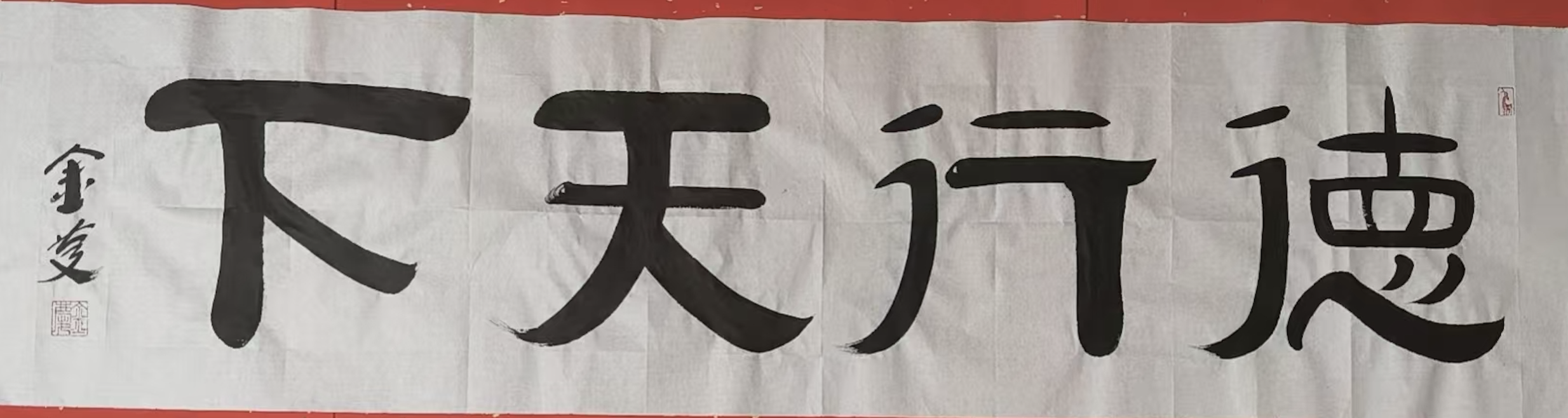 7月上旬,书法作品《天地人和》、《心想事成》、《自强不息》、《喜自福来》,被孔子研游学基地编入《圣地圣迹》。作品与《艺术简历》一起由景德镇精心烧制成瓷版,镶嵌在曲阜尼山圣境孔子诞生地《儒乡印象》外景墙上,永久展示。
