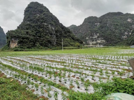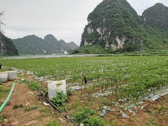 广西崇左市天等县地处广西西南部,辖6个镇7个乡,是传统农业大县,全县耕地面积63.7万亩,主要农产品有水稻、玉米、甘蔗、辣椒、花生、木薯、蔬菜等。境内以喀斯特地貌为主,山地占全县总面积的77.98%,是典型的大石山区。辣椒产业作为该县农业特色主导产业之一,近几年来,全县辣椒种植面积每年保持在5万亩左右。
