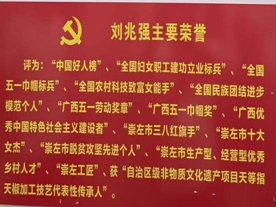 刘兆强女士从昔日的一个下岗工人到今天的公司董事长、全县“经商女能手”、崇左市政协委员、市“十大女杰”、市劳动模范、市“三八红旗手”,广西五一巾帼奖和广西五一劳动奖章获得者等,成绩来之不易。