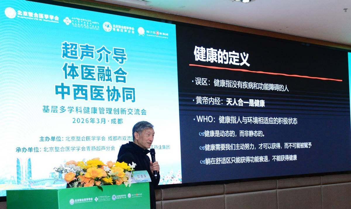 最后,主持人朱波分享自己作为马拉松爱好者,多年坚持跑步,对身心皆大有裨益。她介绍,体医融合专项行动将以双流为起点,于2026年走进全国更多基层地区开展活动,以肌骨超声、胃肠超声为技术切入点,整合运动医学、中医、心理等多学科资源,通过多学科融合学术会议,探索基层健康管理创新模式,推动多学科协作在基层医疗中的应用,提升医务人员综合服务能力,精准满足运动人群颈肩腰腿痛、消化不适、情绪问题等高频健康需求,让体医融合、中西医协同的理念在基层落地生根、开花结果。