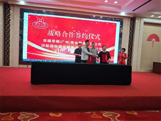 10点30分,活动进入第二个议程——洪门战略合作签约仪式。工作人员很快地将大红大紫宽阔台布铺好,在热烈掌声迎接下,第一个上来签约的是,洪船国际酒业销售(抚州)有限公司与幸福带路(广州)商业服务有限公司。洪船国际酒业销售(抚州)有限公司总经理胡婧璐表示对本次合作充满期待——我们相信,在双方的共同努力下,一定能够实现互利共赢,共同开创更加美好的未来。现场响起阵阵掌声。