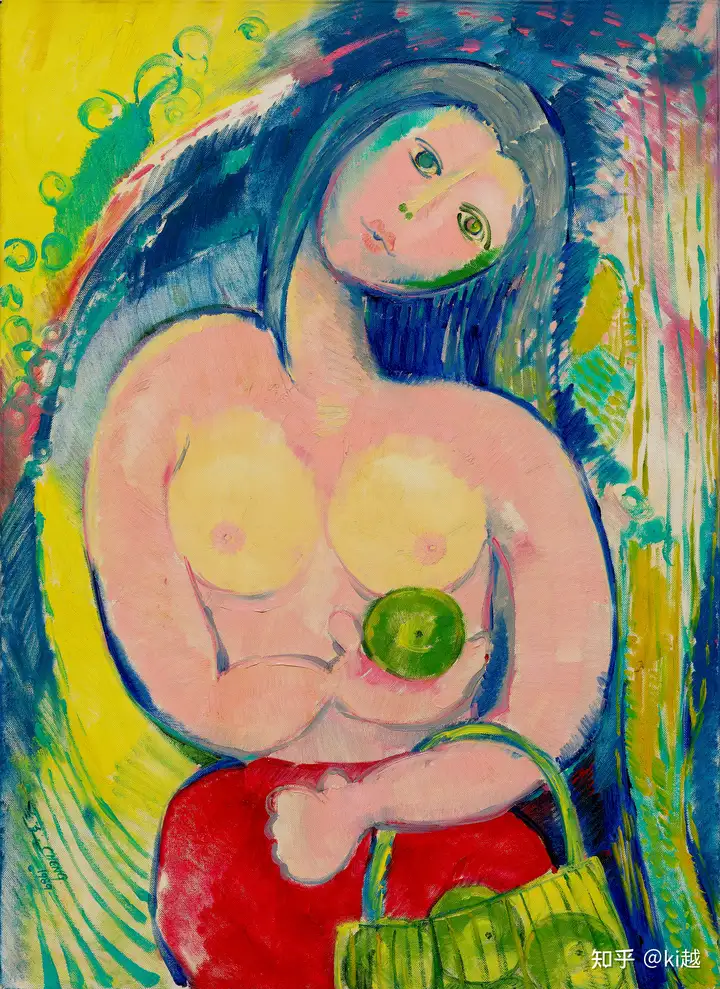 过去所画的玫瑰,温馨感人,今日的水果静物,芳香四溢,未曾品尝便感到香甜可口,例如:葡萄、哈密瓜、石榴,水嘟嘟、甜蜜蜜的如一串明珠落玉盘一般,平面而由立体,圆韵且有质量,观赏其画之余,自然在投入中顷生望而生津之感。