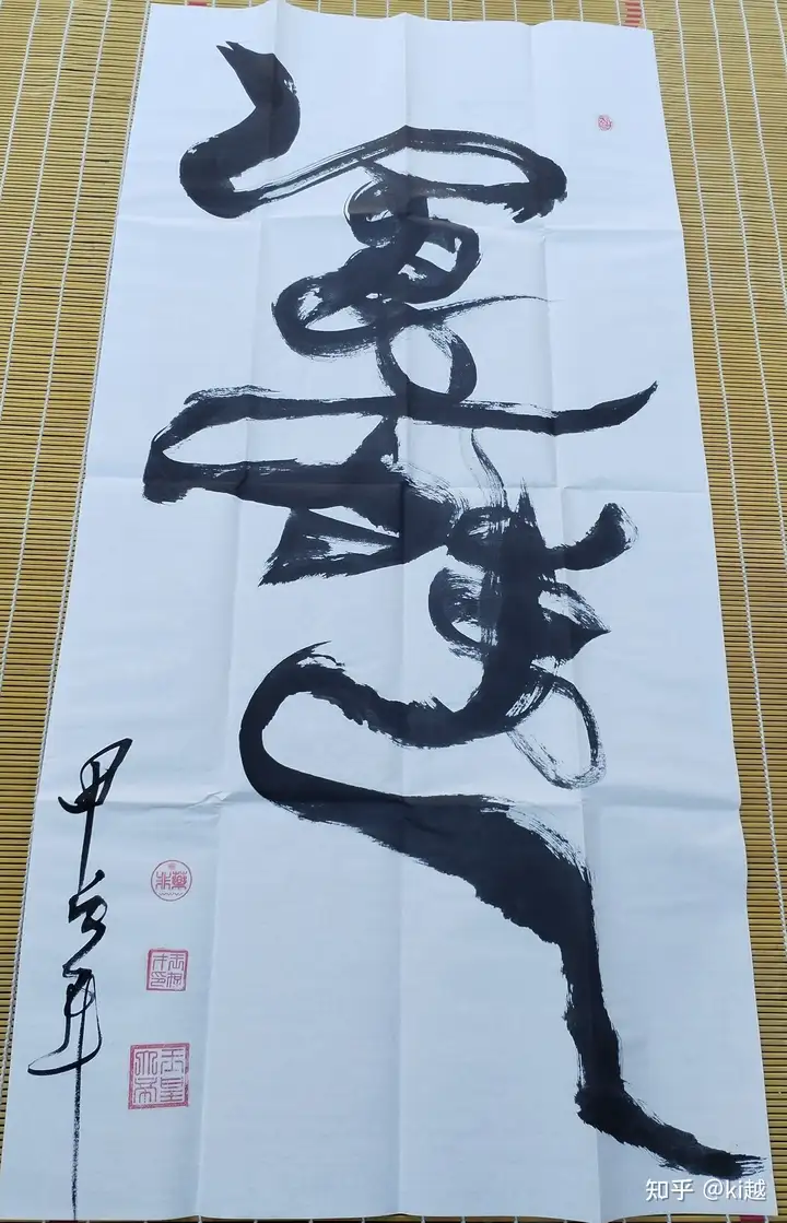 现创作的有,高维能量书法领域系列书法作品21种,每种九幅作品为一套,同字异态 ,跃然纸上。