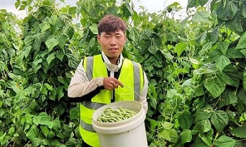 作为南梁村豆角产业的“领航者”,刘宽明的返乡创业之路始终锚定“带动家乡发展”的初心。在外打拼多年的他,敏锐察觉到家乡气候与土壤条件对豆角种植的独特优势,更深知产业对乡亲们的意义。“回来就是想为家乡干点实事,让土地生金,让乡亲们在家门口就能挣钱。”他朴实的话语道出了创业的初衷。为此,他先后赴多地考察学习,引进“白无丝”“绿豆王”等优良品种,邀请农技专家驻点指导,从选种育苗到采收销售全程规范管理,在荒地上建起了350亩的标准化种植基地,让豆角成为南梁村响当当的“绿色名片”。