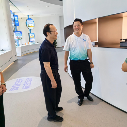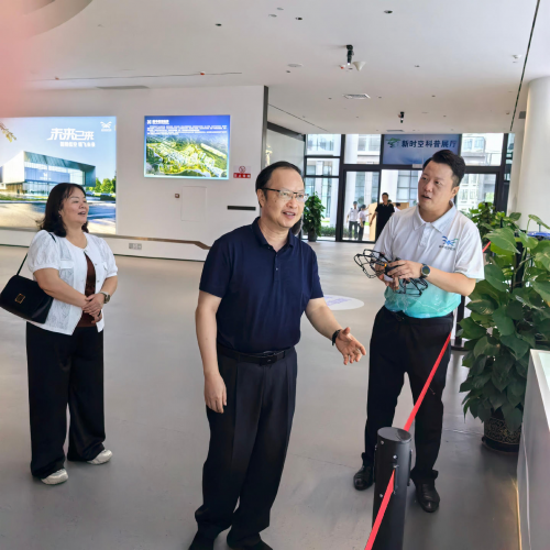调研期间,曾军主席在陈敏锐副总经理的引导下,参观了总部大楼的各个功能区域。据了解,近年来,新丰县紧抓低空经济产业发展机遇,聚焦新质生产力发展,全力推进“百县千镇万村高质量发展工程”走深走实,依托南方智能网联测试中心的空域资源,因地制宜谋划抢跑低空经济,赢得了区域竞争主动,这座近5万平方米的总部大楼,集值机、调度、研发、办公、培训、酒店、餐饮等多功能于一体。这里不仅是低空经济产业的核心枢纽,更是培育新质生产力的重要平台。陈敏锐副总经理介绍,新丰县低空经济总部已成功引进广东京宸航空科技(韶关)公司等一批低空经济领域企业,为产业发展注入了新动能。同时,过去一年开展了新丰江全流域无人机巡检、无人机“展览+表演”节庆活动,不断拓展低空经济应用场景。