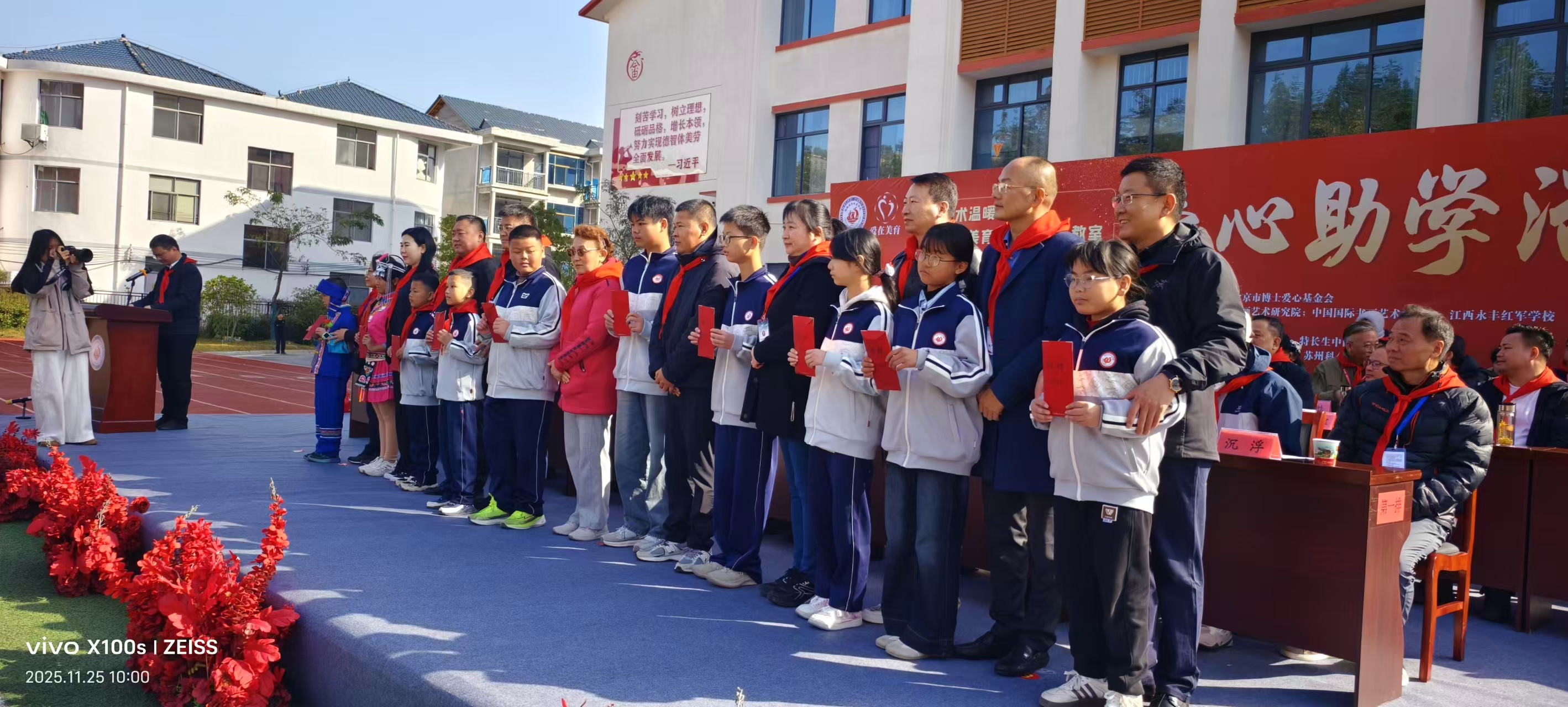 由中国民族文化艺术基金会、中国绿色碳汇基金会书画艺术研究院、中国国际书画艺术研究会联合组织的爱心助学活动于2025年11月25日上午09:30在江西省吉安市永丰县畲族乡红军学校举行。